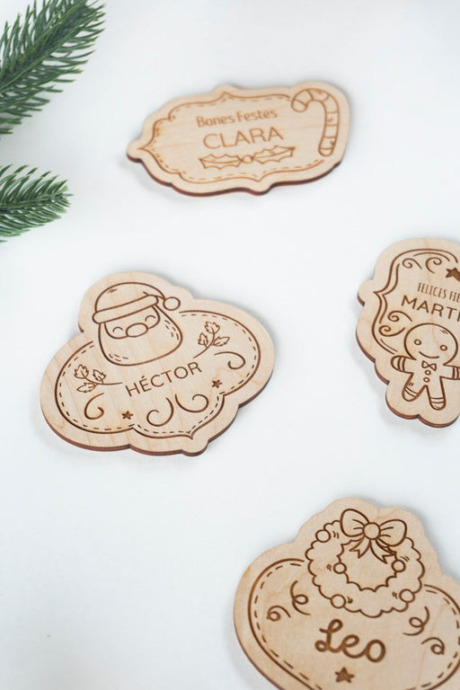 Los Marcasitios con formas navideñas son el toque más especial para vestir tu mesa en las fiestas.Cada uno está hecho en madera natural y grabado c...