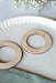 - El servilletero es de madera contrachapada de abedul, la circunferencia exterior mide 8 cm de diámetro i la interior 5 cm de diámetro.