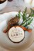 Cada pieza está hecha con una auténtica rodaja de madera, grabada con el nombre que elijas y acompañada de una cinta de terciopelo para darle un toque festivo y elegante.